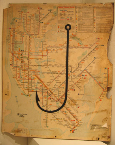 Fish Hook #61 Andrew Castrucci 28" x 23" spray paint on map