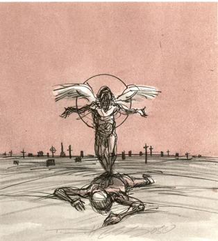 "Beautiful Mistake Original CD Cover" - pen, ink, acrylic - 4.7" x 4.4" sold |