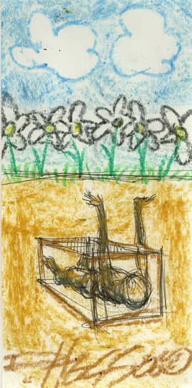 "Pushing Up Daisies" - pen, ink, acrylic, 7.5" x 3.75 |