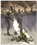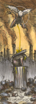 | "Behind Crimson Eyes CD Art" sold interior art - 7.5" x 6", pen, ink, acrylic |