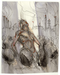 "Behind Crimson Eyes CD Art" interior art sold 4.5" x 6.75" pen, ink, acrylic |