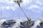 | "Untitled" sold 9.75" x 5.5" pen, ink, acrylic, mounted on lake chart |