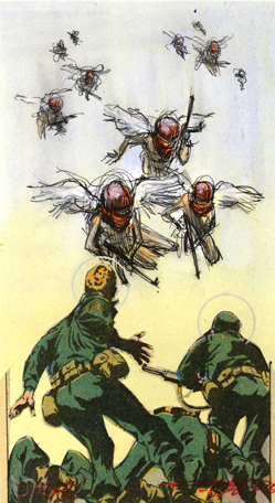 "Jihad" - pen, ink, acrylic, piece of 1970's comic book - 6.25" x 3.5" sold |
