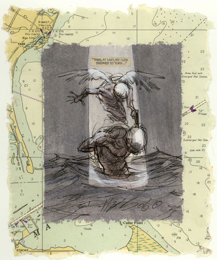 "Untitled" - pen, ink, acrylic, mounted on lake chart - 7" x 5.75" sold |