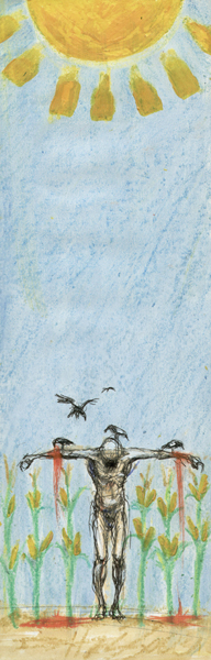 "Scare Crow" - pen, ink, acrylic, crayon - 13.5" x 4.5" sold |