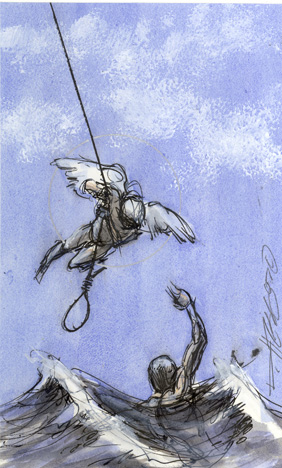 "Untitled" - pen, ink, acrylic - 6.5" x 4" sold |