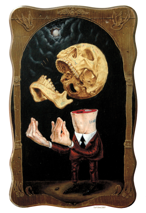Gold Skull - Acrylic and engravings on wood- 15 " x 23 " |