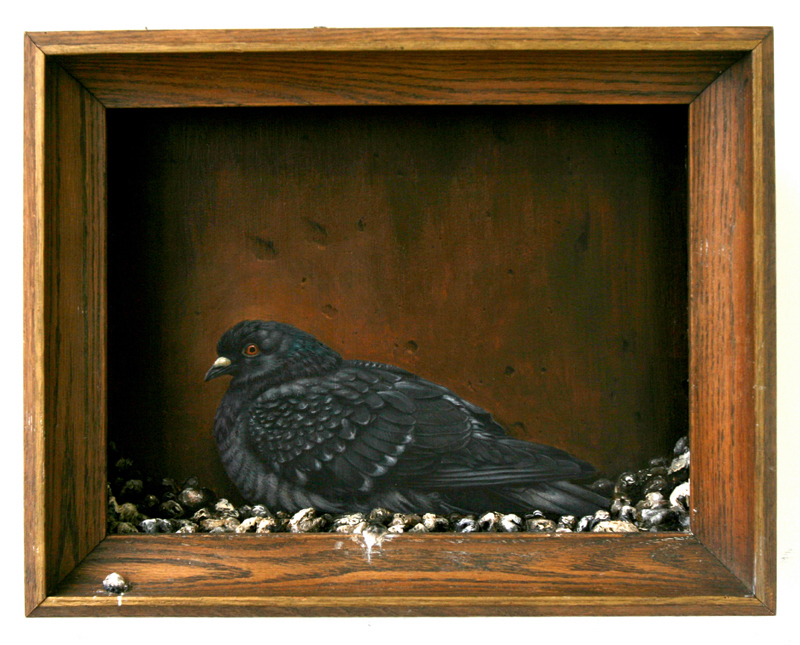 Pigeon Nest in Abandoned Frame - Mixed media on wood- 12.5 " x 16 "x 3 " sold |