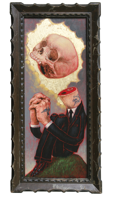 Prière sur la Colline - Acrylic and gold leaf on wood, vintage frame- 11 " x 23 " |