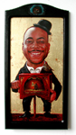 Barrel Organ Grinder Acrylic and gold leaf on wood 28.5 " x 14" |