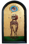 Gold Skull Acrylic and engravings on wood 15 " x 23 " |