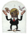 Praying Midget Acrylic, metallic paint and engravings on wood 14 " x 30 " sold |