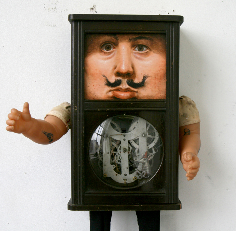 Victorian Robot(detail) - Mixed media on wood and vintage grand-father clock- 69 " x 17 " sold |