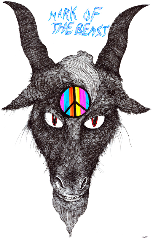 J Penry "Mark of the Beast" - pen and ink - 11 " x 11 " |